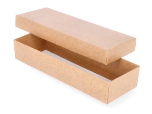 Dviejų dalių dėžės gaminamos iš 270 g storio dvispalvio rudos/baltos spalvos kartono.