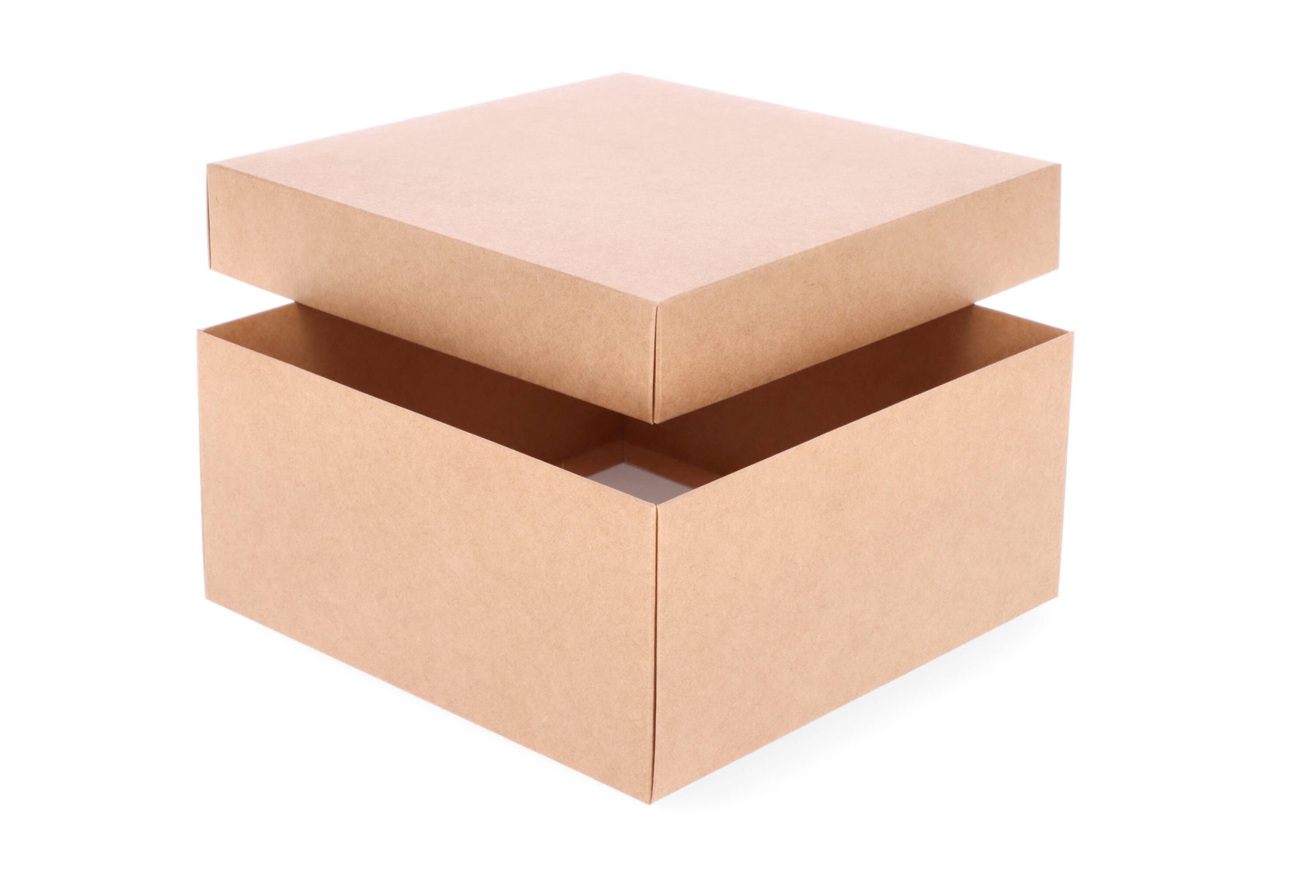 Dviejų dalių dėžės gaminamos iš 270 g storio dvispalvio rudos/baltos spalvos kartono.